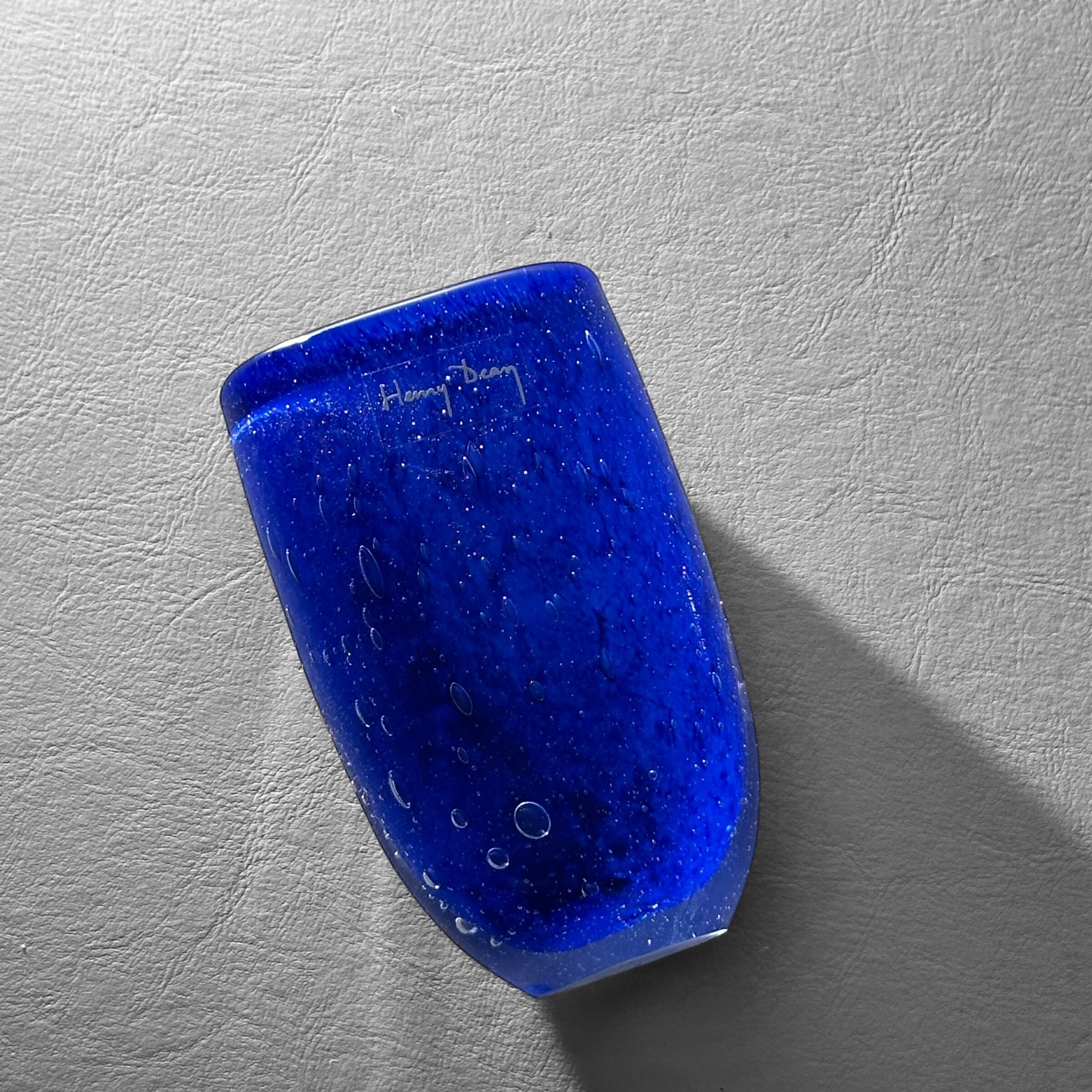 厚みのあるガラスから伝わるずっしりとした重みや、広がる気泡が一つ一つ異なる表情を見せ、ハンドメイドならではの温かみと個性が感じられる一点ものです。